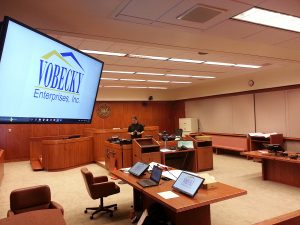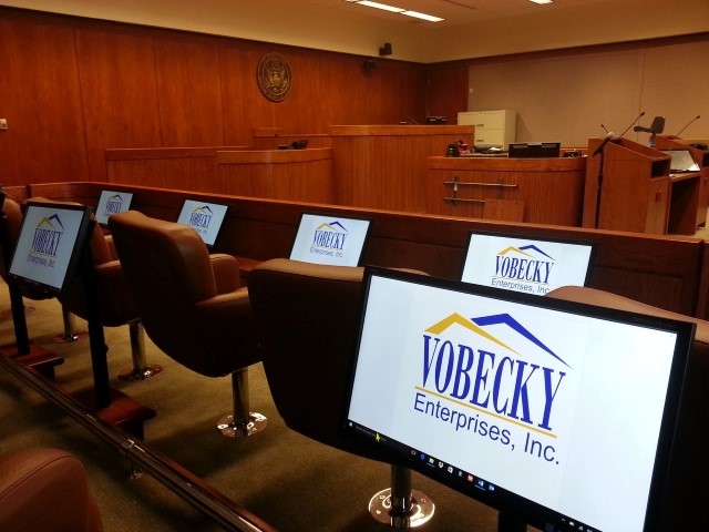 Vobecky Enterprises, Inc. (VEI) served as the Prime Contractor to the General Services Administration to upgrade Courtroom video evidence audio-visual systems, install required AV infrastructure, and perform repair work at the Robert F. Peckham Federal Building & US Courthouse in San Jose, CA.